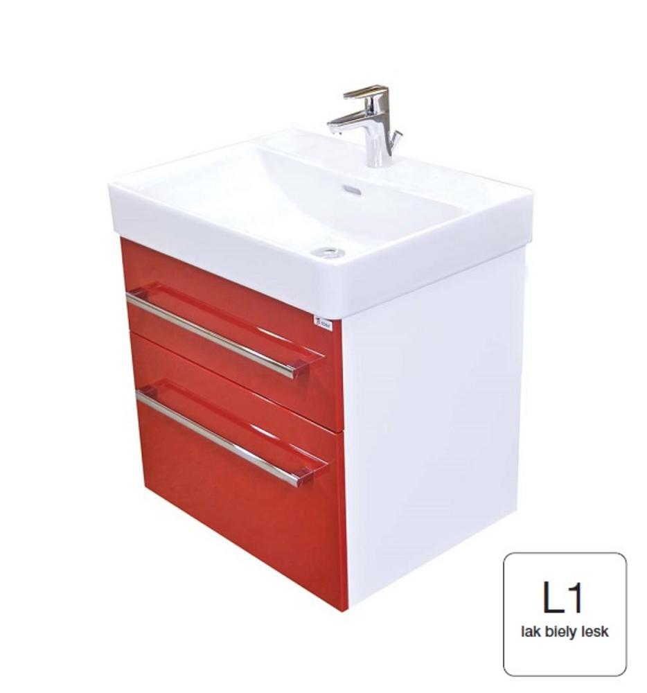 Umývadlo so skrinkou závesnou 60cm s keramickým umývadlom biely lesk SMARAGD