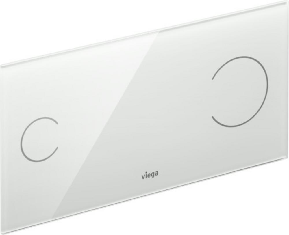 Senzitivní ovládací deska Visign for More 100 - pro následující produkty a použití: podomítková splachovací nádržka 2H, podomítková splachovací nádržka 2L, podomítková splachovací nádržka 2C - možnost dodatečného objednání adaptér model 8355.91 - sklo - bezdotykové splachování zepředu nebo shora, 2množstevní splachovací systém, s funkcí Viega Hygiene Vybavení bovdenová jednotka, síťový zdroj (délk