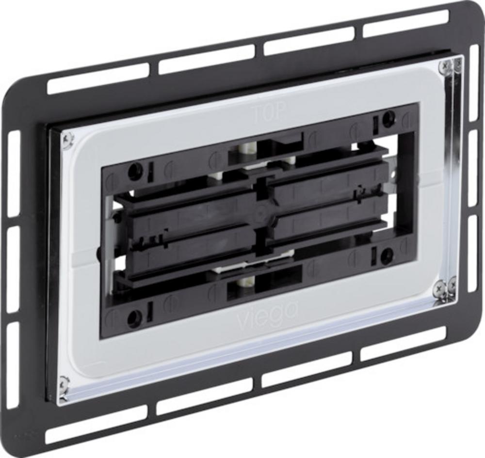Funkční jednotka - pro následující produkty a použití: instalace ovládací desky pro WC v rovině s obkladem, deska z přírodního kamene zajištěná ve vlastní režii - plast - manuální splachování zepředu nebo shora, 2množstevní splachovací systém Vybavení bovdenová jednotka, vestavný rám v rovině s obkladem, úchytný rám, upevňovací materiál Upozornění Vestavné rámy v rovině s obkladem lze použít pouze u předstěnových systémů Viega pro suchou výstavbu (Viegaswift, Steptec a Viega Eco Plus)! Síla desky z přírodního kamene zajišťované ve vlastní režii nesmí překročit 4–4,5 mm! model 8332.3