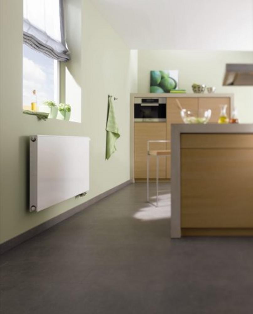 Kermi therm-x2 Plan-V je moderné doskové vykurovacie teleso s hladkou čelnou doskou a prednostným zahrievaním prednej dosky vďaka patentovanej technológii therm-x2. Vhodné pre všetky typy vykurovacích systémov, energeticky efektívne a ľahko montovateľné. - Typy: od 10 po 33, jedno-, dvoj- alebo trojdoskové varianty