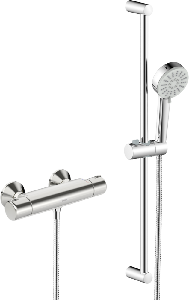 Vodovodná batéria sprchová termostatická so sprchovým setom - ružica ručná 3-pol+hadica 150cm+tyc 70cm BASIC HANSA