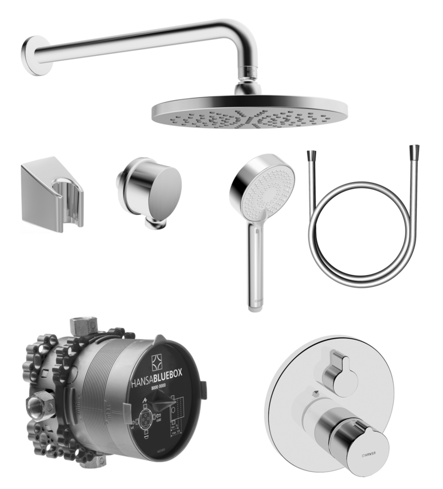 Sprchový set podomietkový s ručnou sprchou a okrúhlo hlavovou sprchou chrom Hansa COMFORT PACK 89940000