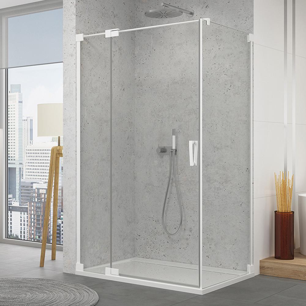 Jednokrídlové dvere s pevnou stenou v rovine ľavej - pánty vľavo / 1 strana rohového vstupu, 800 mm, profil matný biely, sklo číre, Cadura, SanSwiss
