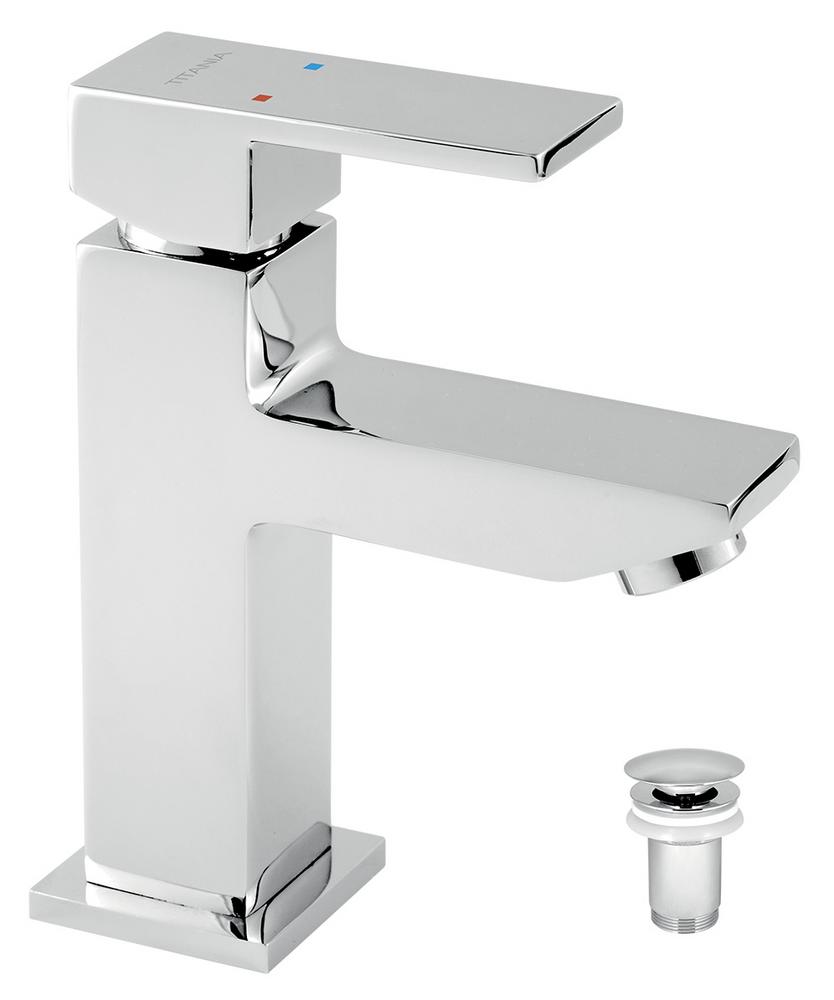 Vodovodná batéria umývadlová stojanková páková chrómová s odpadovou súpravou výška 16,1cm, vr.click-clack,pre um.s prepadom Tina Cube Novaservis