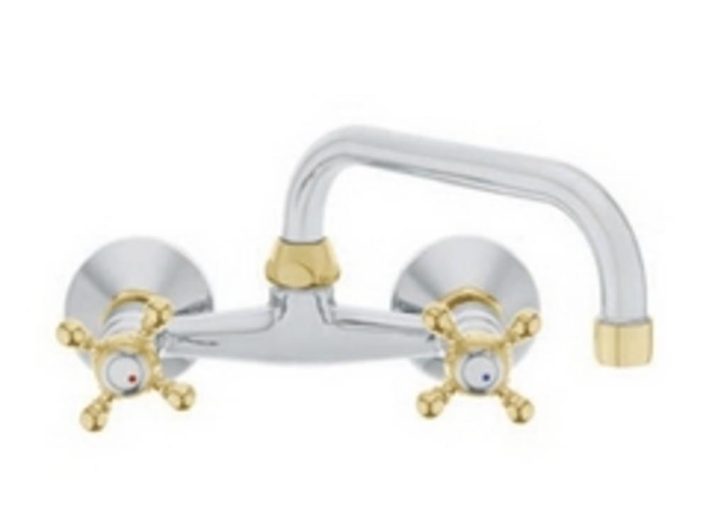 HERZ Drezová zmiešavacia batéria STIL 150mm "U" výtok, nástenná 150mm, chróm - zlatá