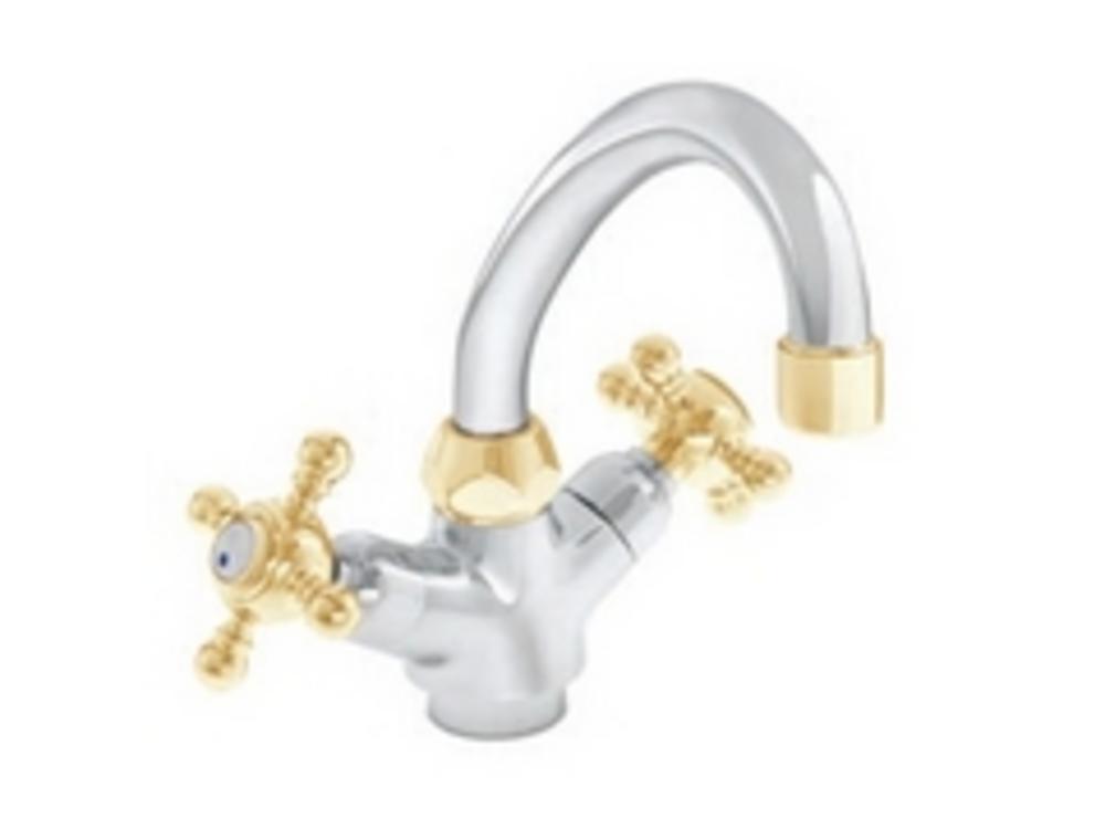 HERZ Drezová zmiešavacia batéria STIL stojanková "HU" výtok, s rohovými ventilmi, chróm - zlatá