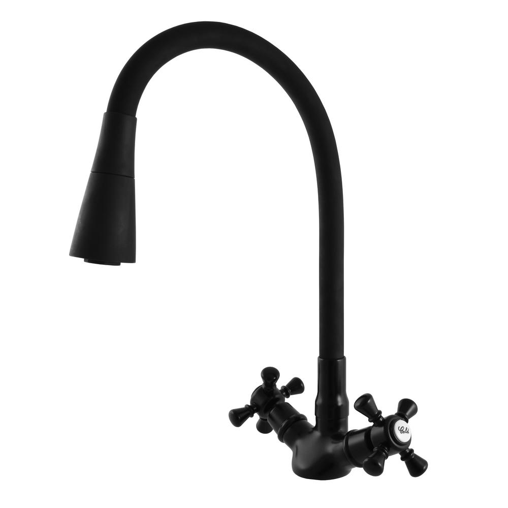 Umývadlová batéria s flexibilným ramenom so sprchou.