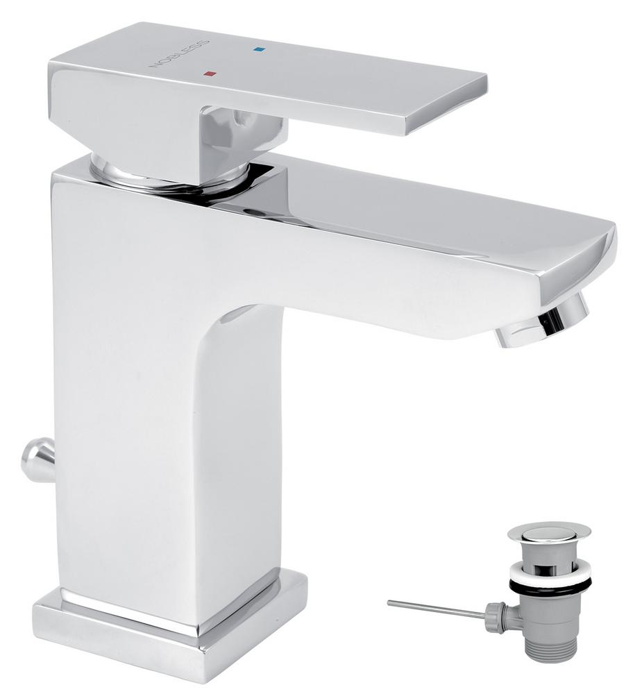 Vodovodná batéria umývadlová stojanková páková chrómová s odpadovou súpravou výška 15,7cm Nobless Edge Novaservis