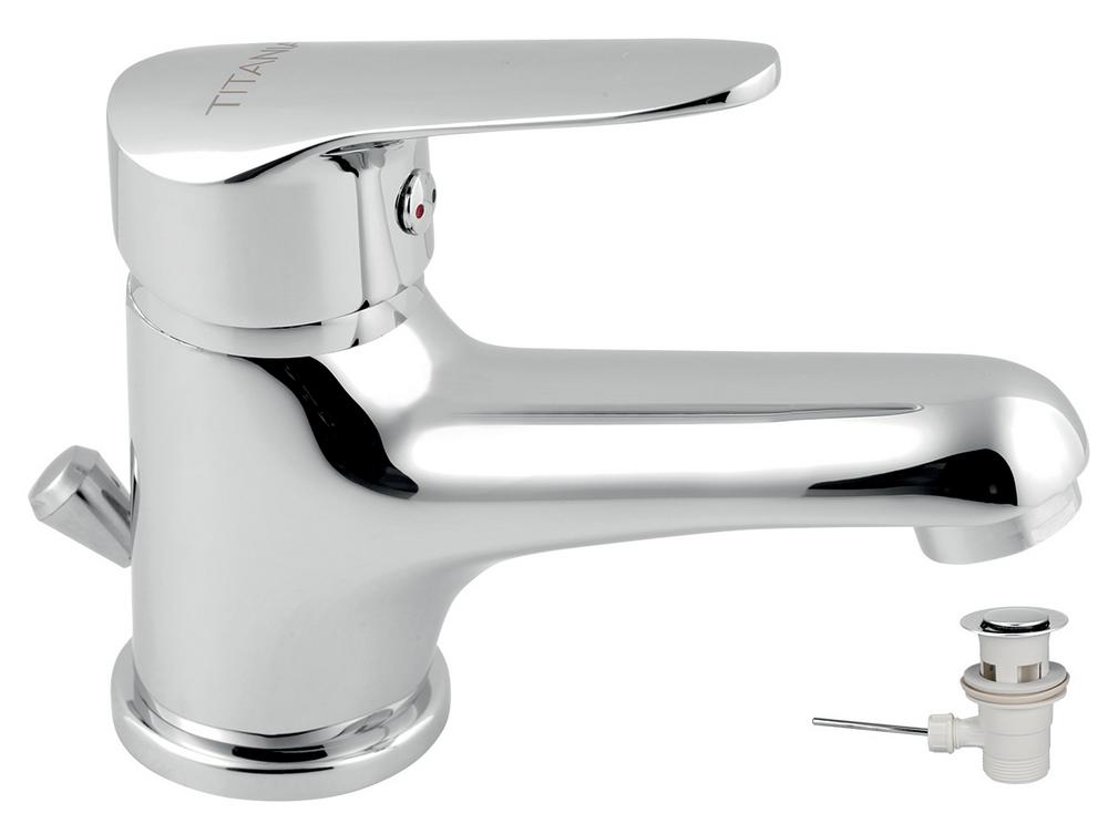Vodovodná batéria umývadlová stojanková páková chrómová s odpadovou súpravou výška 12cm Titania Iris New Novaservis