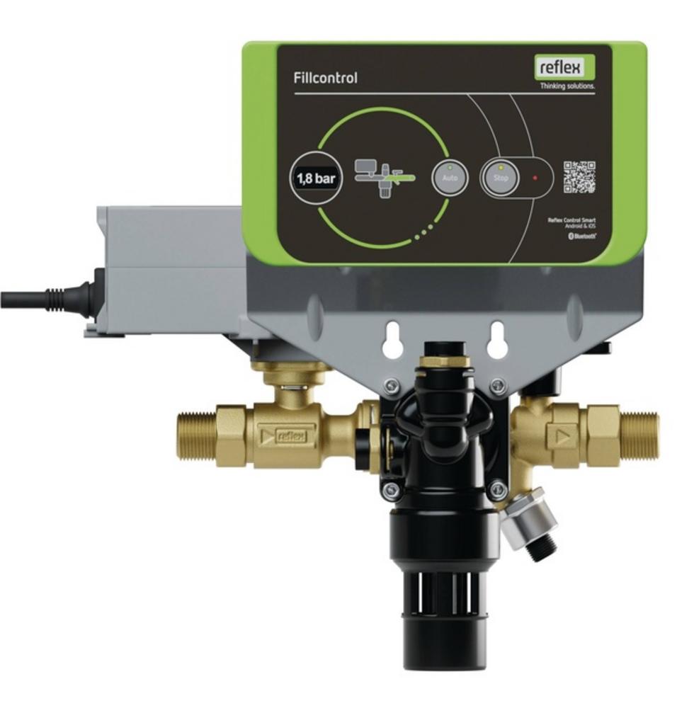 Fillcontrol Plus Compact Automatická dopĺňacia a plniaca stanica pre vykurovacie a chladiace systémy s tlakovými expanznými nádobami s membránou (MAG). Umožňuje kontrolované a podľa DIN EN 1717, príp. DIN 1988 požadované bezpečné dopĺňanie a systémové plnenie z priamo pripojených vodovodných sietí pitnej vody a realizuje podľa DIN EN 12828 a VDI 4807 odporúčanú funkčnú kontrolu systému na udržanie tlaku (MAG). Pozostávajúca z uzatváracej armatúry, DVGW skontrolovaného systémového oddeľovača (BA) podľa DIN EN 12729, zachytávača nečistôt, senzora tlaku, guľového kohúta motora, redukčného ventila s kontrolným manometrom a mikroprocesorovým riadením. Všetky komponenty sú ľahko prístupné a priestorovo úsporne integrované do krytu. Kontrolované, tlakovo závislé dopĺňanie sa uskutočňuje s automatickým prerušením a poruchovým hlásením pri prekročení doby chodu a/alebo počtu cyklov. Prvé naplnenie zariadenia a opakované naplnenie bude možné prostredníctvom na tento účel nastaviteľného prevádzkového režimu. Cez plne automatické, voľne parametrizovateľné mikroprocesorové riadenie s LCD displejom pre všetky relevantné prevádzkové a poruchové hlásenia a zobrazenie tlaku, ako aj bezpotenciálový výstup a bzučajúci hlásič pre hromadné poruchové hlásenie sa uskutočňuje funkčné riadenie a funkčná kontrola CE označenej stanice.