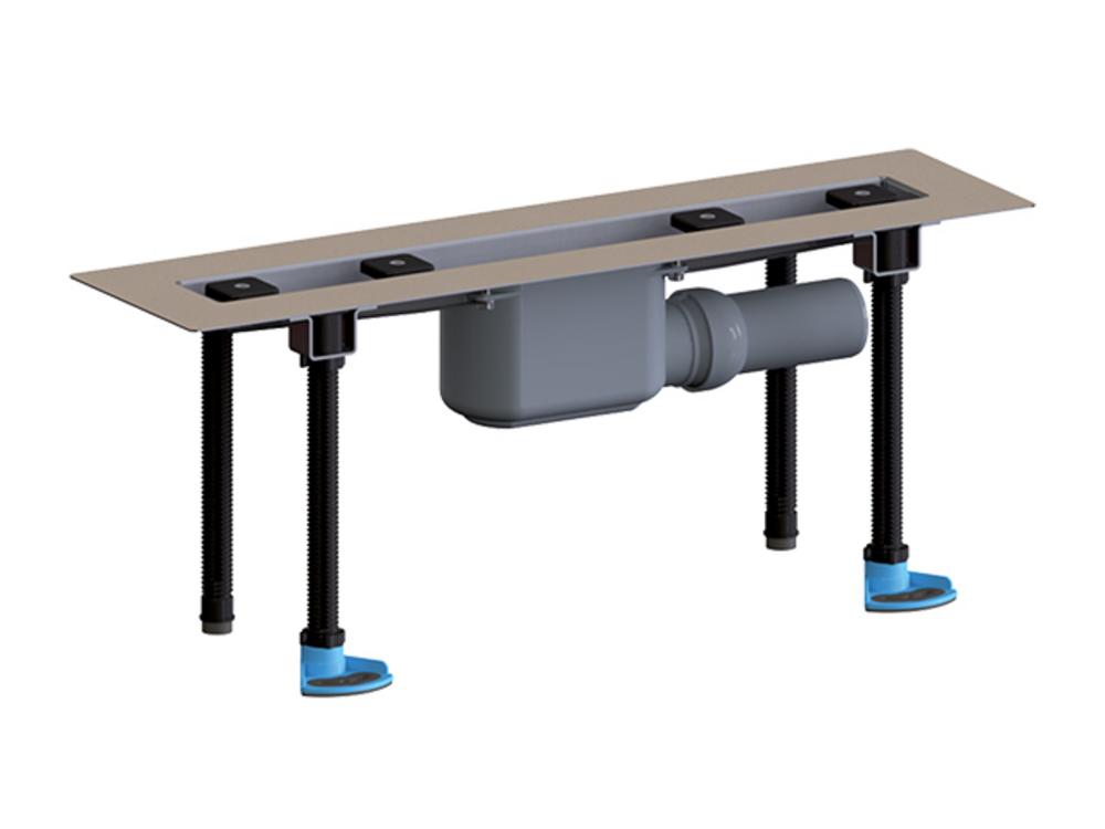 HL50F.0/120 Nerezový sprchovací žľab k nasadeniu na plochy bez krytky, pozostávajúci z nerezového, žľabového telesa prechádzajúceho do príruby k napojeniu hydroizolačného materiálu, PP- odtok s guľovým, kĺbovým pripojením DN50 vodorovným a vyberateľným protizápachovým uzáverom. Rýchlosť odtoku 0,8 l/sek. 4 ks. výškovo nastavitené, zabudovateľné montážne nohy a stavebná krytka. Dĺžka zabudovania 1200mm.