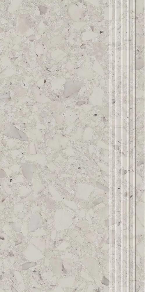 Dlažba kameň stopnica TERAZZO WHITE NACINANA MAT 29,8X59,8 R10 hr.8