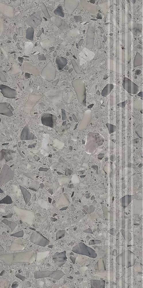 Dlažba kameň stopnica TERAZZO GREY NACINANA MAT 29,8X59,8 R10 hr.8
