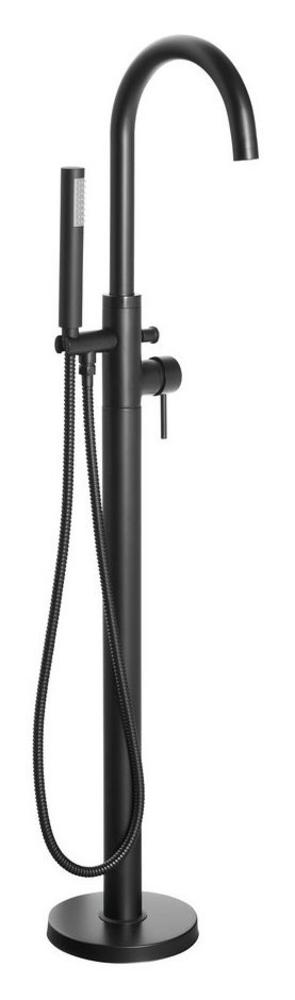 Vaňová batéria na podlahu farba matná čierna materiál mosadz výška batérie 1175 mm dĺžka výtoku 228 mm komfortná zóna 1034 mm pákové ovládanie tlakový prepínač s aretáciou vaňa/sprcha s otočným ramienkom priemer kartuše 40 mm vrátane sprchového príslušenstva tyčová ručná sprcha inštalácia priamo do podlahy, bez montážneho telesa