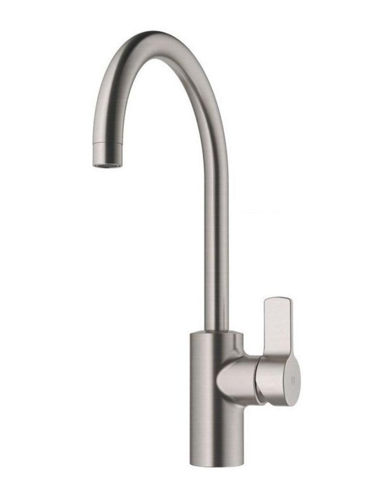 Vodovodná batéria drezová stojanková páková brúsený nikel ramienko "J" otočné Elite Herz