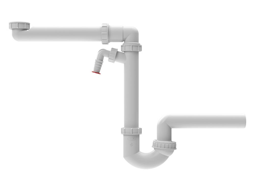 HL126/50 Zápachový uzáver šetriaci miesto DN50 s kĺbom, pre kuchynské drezy s prípojkou so spätnou klapkou pre umývacie zariadenia s výškovo nastaviteľnou trubkou s pripojovacím závitom 6/4"