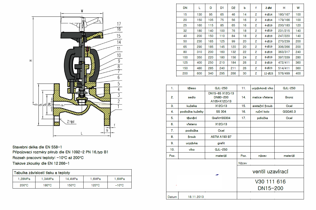 Rozmery: DN15 – DN200