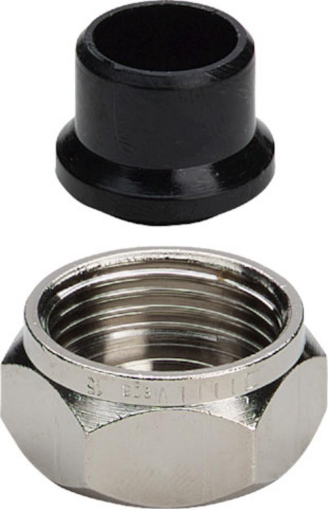 Připojovací šroubení - pro následující produkty a použití: měděná trubka, ocelová trubka - poniklovaná mosaz - zástrčné sedlo Viega Vybavení vícehran model 94385.1 artikl 105 358 d: 15 G: 3
