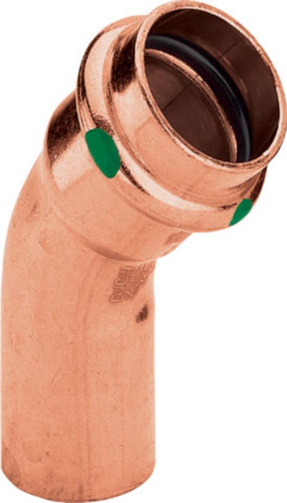 Profipress -oblouk 45° s SC-Contur - měď - zásuvný konec, lisovací přípoj Vybavení těsnění EPDM model 2426.1 artikl 292 553 osvědčení VdS d: 54