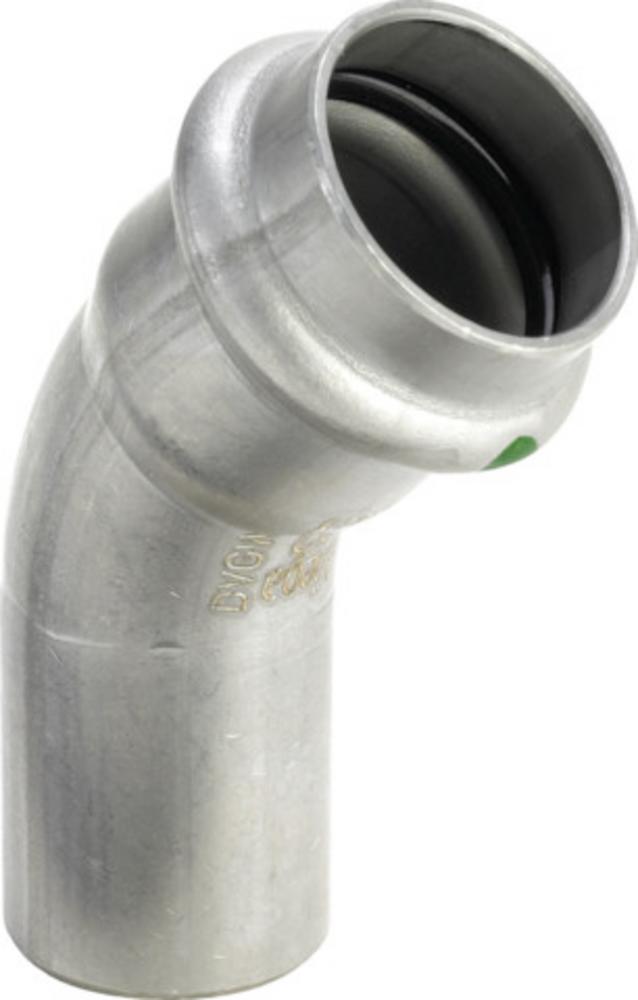 Sanpress Inox -oblouk 45° s SC-Contur - ušlechtilá ocel - zásuvný konec, lisovací přípoj Vybavení těsnění EPDM model 2326.1 artikl 435 431 osvědčení VdS d: 42