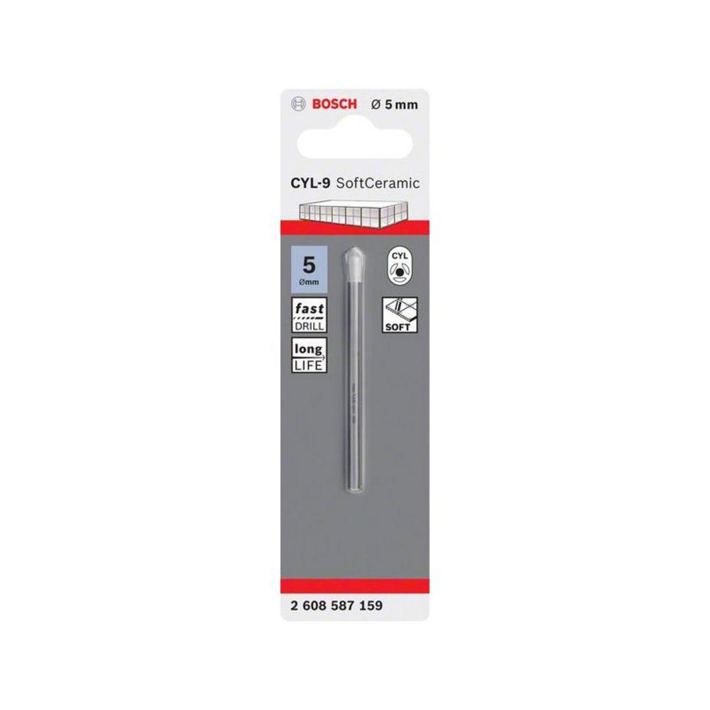 Špirálový vrták na dlaždice CYL-9 SoftCeramic Hodí sa na všetky mäkké až stredne tvrdé dlaždice, porcelán, keramiku a netvrdené sklo Tvrdokov s dlhou životnosťou Zosilnená hlava maximalizuje životnosť vrtáka Strediaci hrot pre presný začiatok vŕtania bez skĺznutia Farba vrtáka: biela Upozornenie: Pracujte s nízkymi otáčkami a bez príklepu. Nie je nutné chladenie Technické parametre Priemer: 5 mm C
