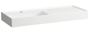 Umývadlo do nábytku, odkladacia plocha vpravo, bez prepadu, vrátane odpadového ventilu Kartell • LAUFEN vás prenesie do ríše éterickej krásy, kde sa obyčajnosť rozplynie v odvážnom spojení farieb, svetla a dizajnu. Táto vizionárska spolupráca nanovo definuje kúpeľňu a pozýva vás, aby ste tvarovali plynulý, neustále sa vyvíjajúci priestor a premenili ho z obyčajnej funkcie na plátno pre kreativitu
