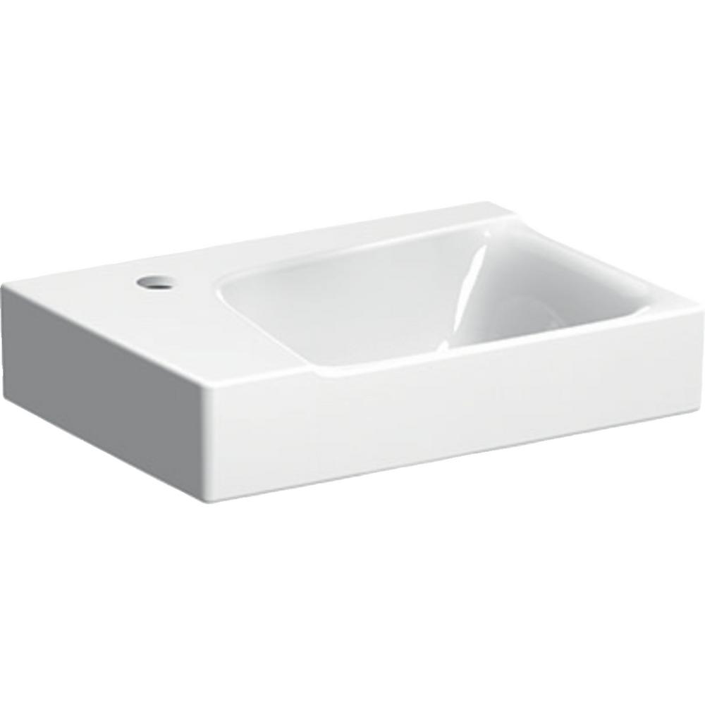 Malé umývadlo Geberit Xeno2: Biela / KeraTect, B=40cm, H=12.5cm, T=28cm, Otvor pre batériu=Vľavo, Prepad=Bez