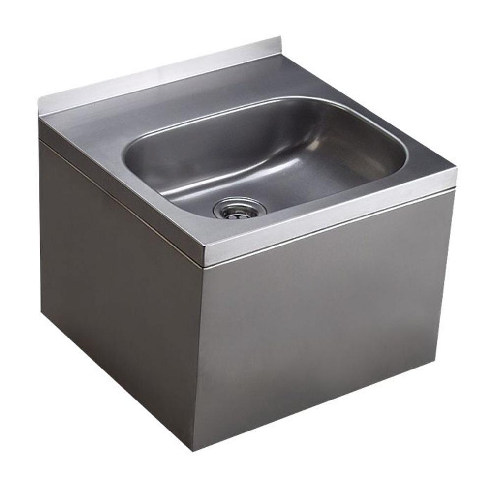 Nerezové závesné obdĺžnikové umývadlo s opláštením, bez otvoru pre batériu, vrátane sifónu a upevňovacej sady, materiál CrNi 18/10 (AISI-304),povrch matný, vonkajšie rozmery 400 x 385 x 400 mm Sanela SLUN 13