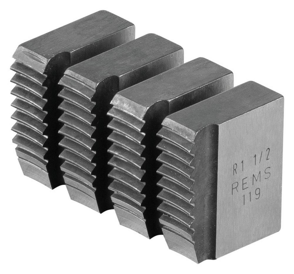 Trubkový závit kónický pravý ISO 7-1, DIN EN 10226 (DIN 2999, BSPT) Osvedčené, nezničiteľné kvalitné závitorezné čeľuste REMS s optimálnou geometriou britu zaručujú super ľahké narezávanie, ľahké rezánie závitu a čistý závit. Z odolnej, zvlášt’ kalenej špeciálnej oceli, zaručujúcej extrémne dlhú životnosť. Pre závitnice REMS eva, Amigo E, Amigo, Amigo 2, Amigo 2 Compact.