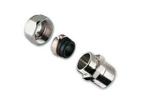 PN 10, T = +120 °C vsuvka vonkajší alebo vnútorný závit 1/2” alebo 3/4”, zverné šróbenie pre Cu (IVAR.TR), ALPEX (IVAR.TA) alebo PEX (IVAR.TP) IVAR.RR 4608 N - vonkajší závit IVAR.RR 4613 N - vnútorný závit materiál niklovaná mosadz CW617N